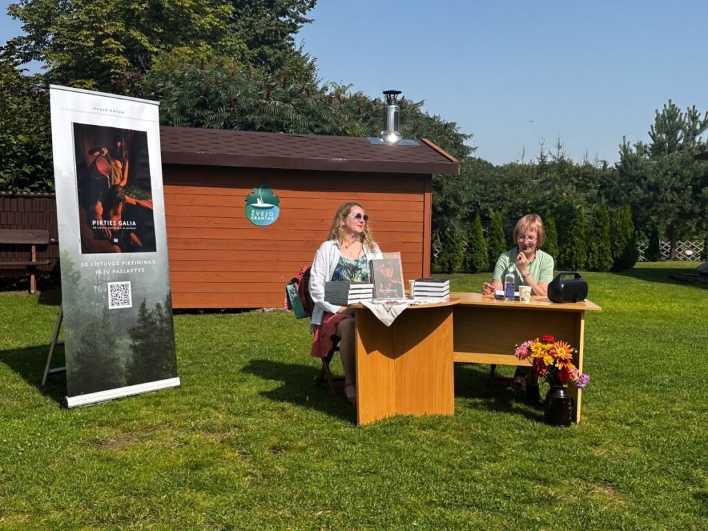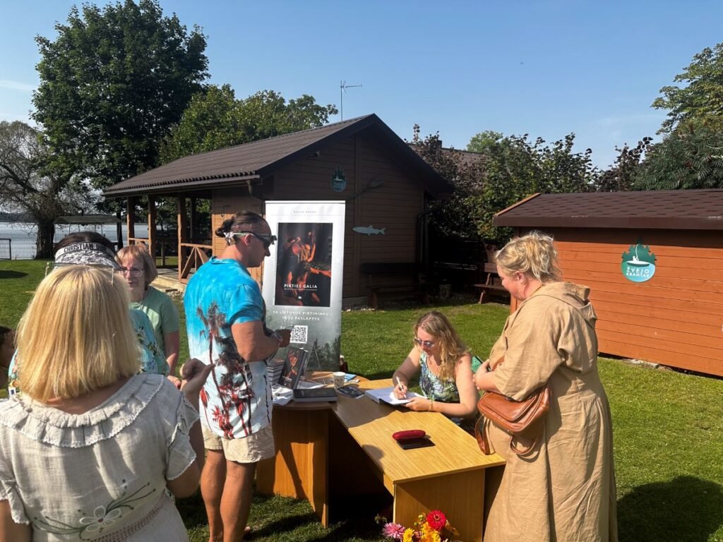 Koks puikus ir netikėtas knygos „Pirties galia. 50 Lietuvos pirtininkų paslaptys“ pristatymas Palūšėje. Nuostabiausias oras pasikalbėti apie knygą lauke, labai graži vietelė prie ežero, šauniai daugybę nestandartinių klausimų pasiruošusi bibliotekininkė Rita Ramanauskienė, su kvapniausiomis vantomis atėjusi pirtininkė Nijolė Nagurnaitė ir spalvingiausia, nuoširdžiausia, labai smalsi publika.