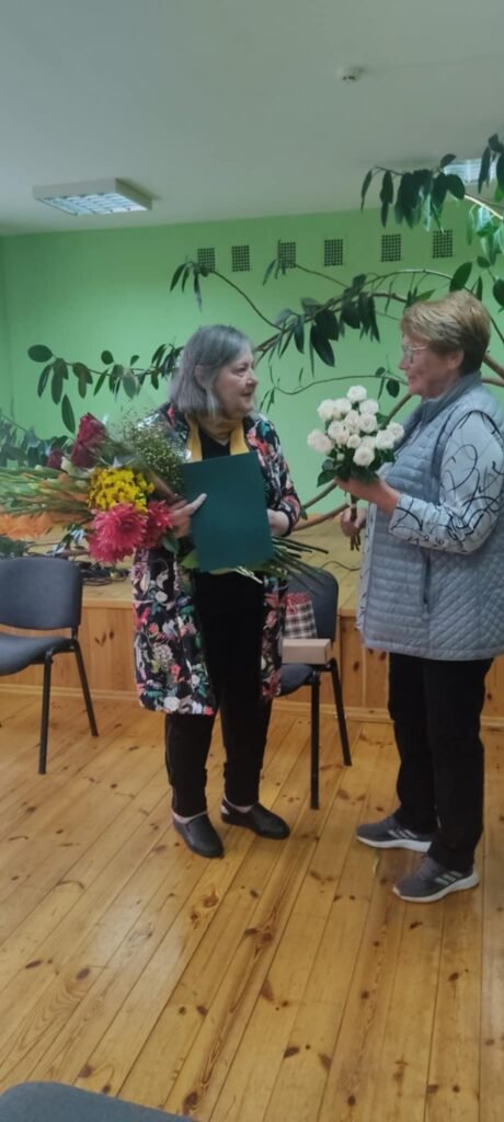 Rugsėjo 12 dieną Tverečiaus bibliotekoje susirinkome į ypatingą renginį. Čia, jaukioje erdvėje, kurioje knygos ir žmonės susitinka pokalbiui, vyravo laukimo ir šventiškos nuotaikos dvelksmas. Jo pradžioje sveikinome garbingą jubiliejų šventusią daugelio mūsų lietuvių kalbos mokytoją, poetę Nijolę Labuckaitę-Bielinienę. Kuklus mūsų krašto perliukas, eilėmis ir žodžiais paliečiantis ne vieną širdį, sulaukė šilčiausių linkėjimų. Sveikinti poetės išsirikiavo visa eilė gerbėjų, o jų šypsenos ir širdingi žodžiai kūrė pakilią, šventišką nuotaiką.
