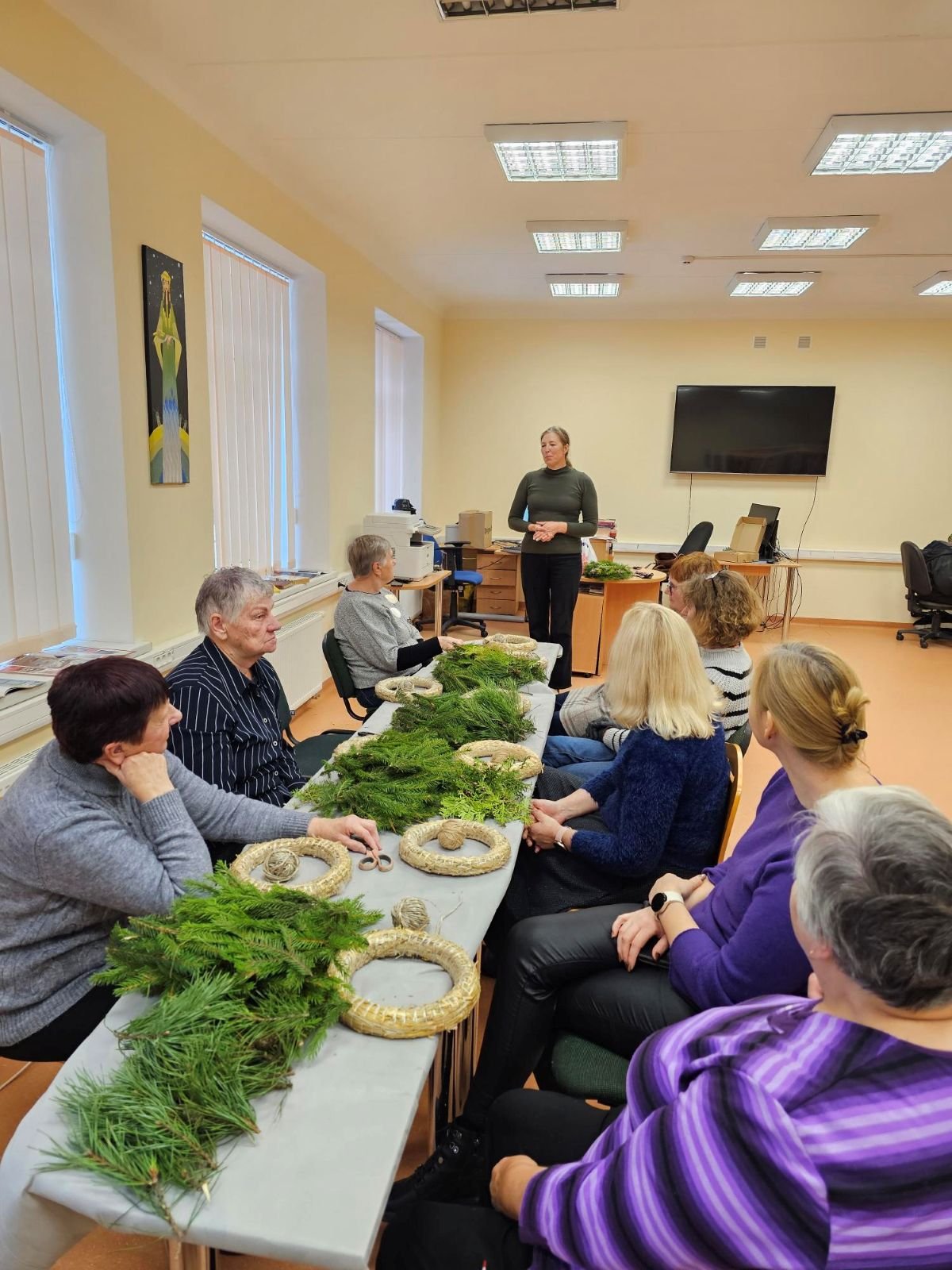 Lapkričio 27 d. Rimšės bibliotekoje susirinkome į Advento vainiko dirbtuves, kurias mums pravedė Renata Veličkienė. Renginio pradžioje bibliotekininkė pristatė Advento vainiko tradiciją, kuri mūsų šalyje išpopuliarėjo po 1990 metų, nors atkeliavo iš Vakarų Europos gerokai anksčiau.