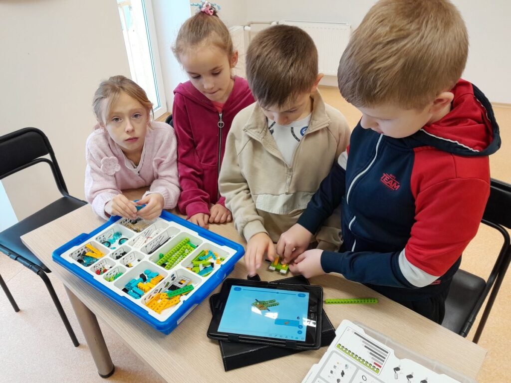 Užsiėmimų metu vaikai, suskirstyti į komandas, dirbo su LEGO WeDo rinkiniais. Kiekviena komanda kūrė savo automobilį: rinko detales, konstravo, o vėliau mokėsi jį programuoti, kad šis judėtų, reaguotų ir būtų pasiruošęs lenktynėms. Mokiniai ne tik sužinojo, kaip veikia paprasti robotai, bet ir aiškinosi, kas yra greitis, kaip jis kinta, nuo ko priklauso automobilio judėjimas.