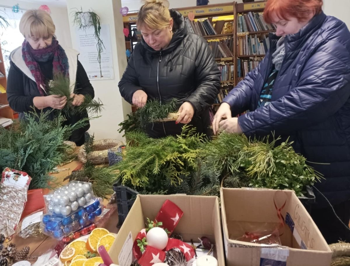 Bibliotekoje pakvipo eglišakiais, džiovintais augalais ir žvakių vašku. Čia, tarp lentynų ir ramių puslapių šiugždesio, mes pynėme Advento vainikus. Kol rankos kruopščiai dėliojo šakeles, spyglius ir dekoracijas, prisiminėme vainiko atsiradimo tradicijos istoriją. Kadaise jis buvo paprastas, iš šiaudų nupintas ratas, kuriame uždegama kiekvieną savaitę po žvakę, taip artėjant prie šventės, prie šviesos.