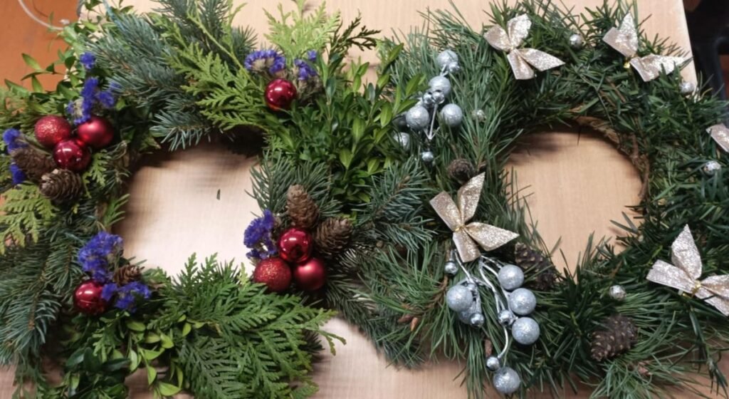 Kiekvienas susikūrėme savąjį vainiką – kitokį, atspindintį asmeninį skonį, nuotaiką ir vidinį laukimą. Vieni rinkosi tradicines žalias šakeles su keturiomis žvakėmis, kiti drąsiau derino ryškesnes spalvas, uogas, džiovintas gėles. Kai darbai buvo baigti, stalą papuošė spalvinga vainikų mozaika – šilta, gyva, pripildyta kūrybos ir prisiminimų.