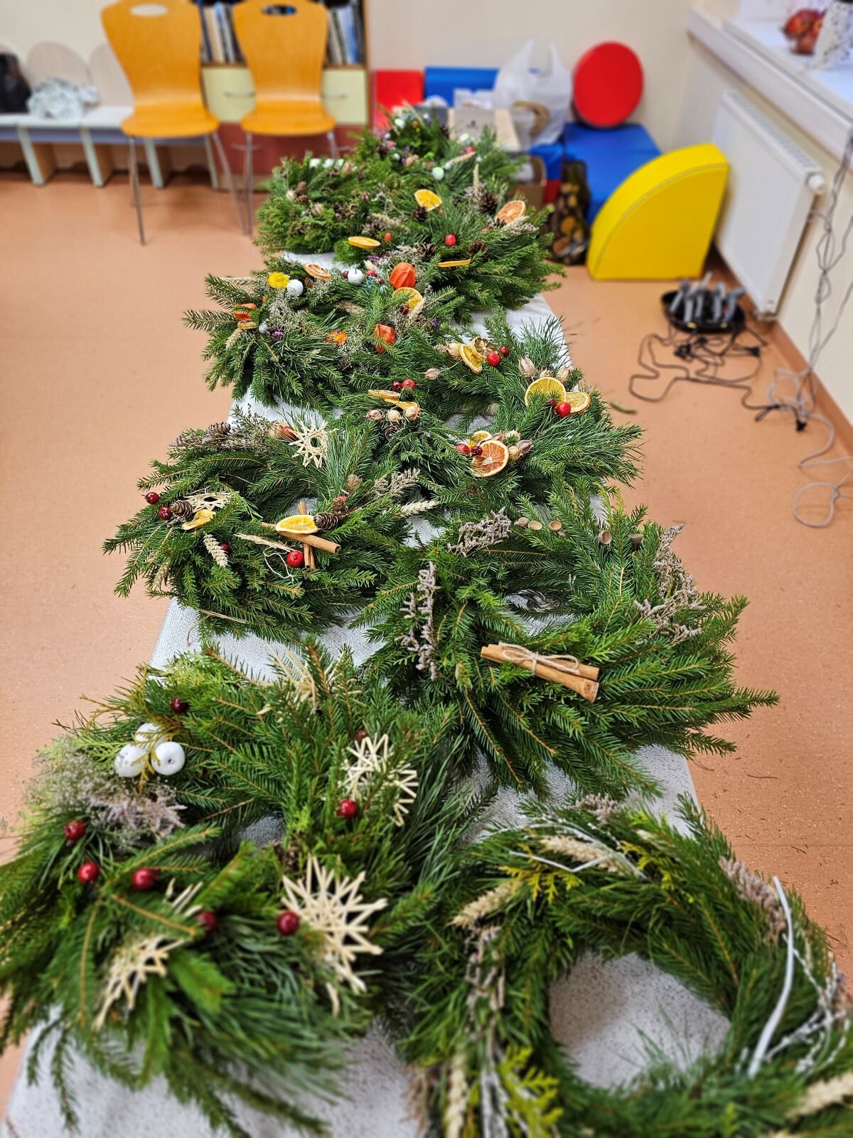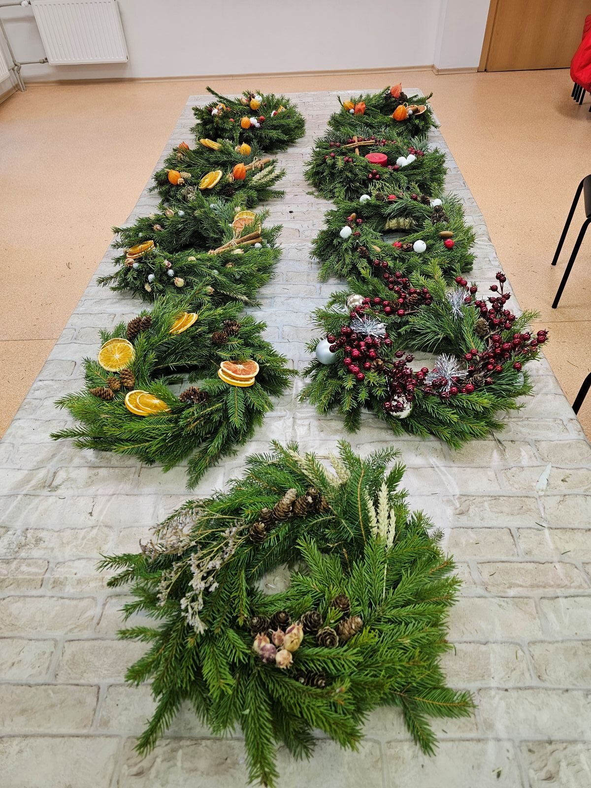 Bibliotekų erdvėse tvyrojo eglišakių kvapas, švelnus šurmulys ir ramūs pokalbiai apie Advento tradicijas, pasiruošimo prasmingumą, šeimos papročius. Dirbtuvių dalyviai pynė vainikus iš natūralių eglių šakelių ir įvairių papuošimų, o jų rankose gimstantys darbai tapo mažais šviesos, vilties ir laukimo simboliais. Kiekvienas vainikas buvo savitas – atspindintis kūrėjo nuotaiką, kūrybiškumą ir tai, kuo gyvena širdis šiuo ypatingu metų laiku.