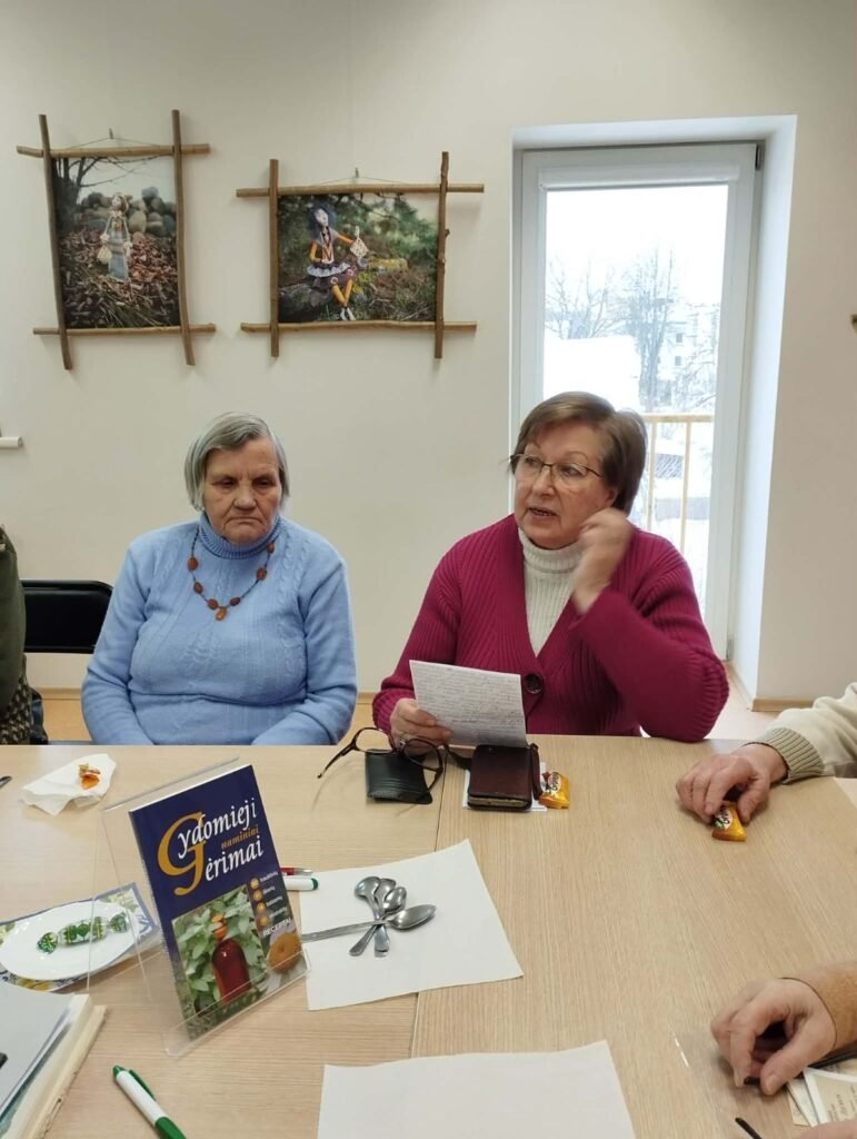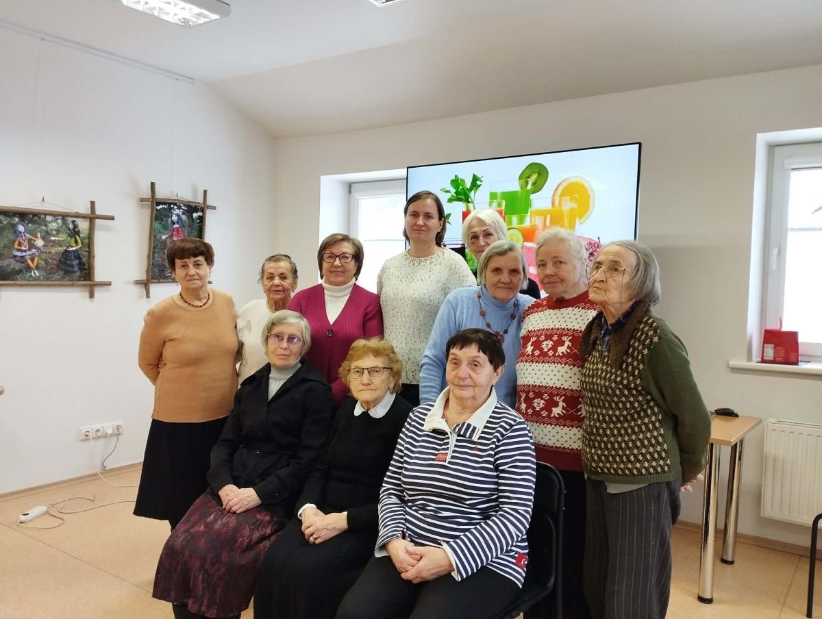 Vėliau susitikimas natūraliai peraugo į šiltą popietę „Apšerkšniję mūsų dienos“. Skambėjo lietuvių poetų eilės apie žiemą, liejosi estrados maestro Stasio Povilaičio dainos, o klubo narė Aldona Freder papasakojo apie maestro gyvenimo kelią. Netrukus ir pačios dalyvės įsitraukė į dainavimą. Ši popietė buvo kupina bendrystės, nuoširdžių pokalbių, prisiminimų ir tikros žmogiškos šilumos, kuri dar ilgai lydės visų širdis.
