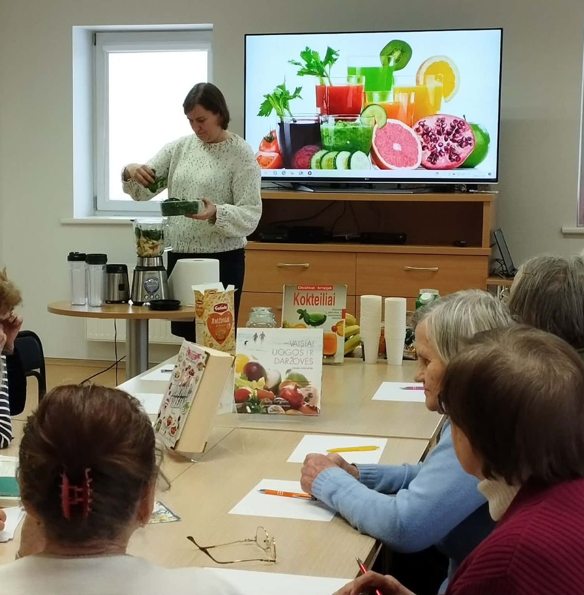 Sausio 26 dieną pagyvenusių žmonių klube „Rudenėlis“ tvyrojo ypatingai jauki nuotaika – čia vyko šiltas ir prasmingas susitikimas, skirtas Kokteilių dienai. Į svečius atvykusi Visuomenės sveikatos biuro sveikatos stiprinimo specialistė Agnė Paukštienė ne tik pasidalijo naudingomis žiniomis apie sveiką gyvenseną, bet ir su dideliu entuziazmu gamino įvairius sveikuoliškus kokteilius. Moterys su susidomėjimu ragavo, dalijosi įspūdžiais, užsirašinėjo receptus ir džiaugėsi idėjomis, kurias galės išbandyti ir namuose.