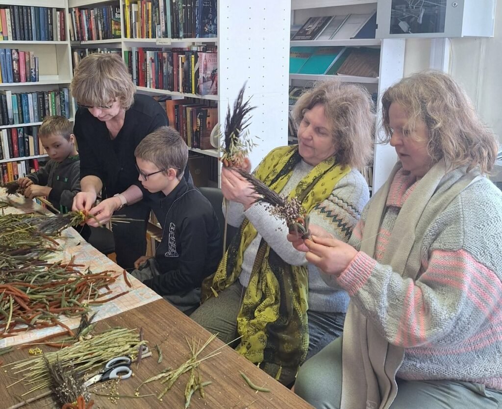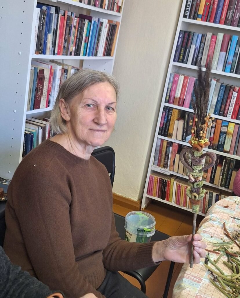 Nors iki Verbų sekmadienio likusi savaitė, mūsų rankose jau puikuojasi spalvingos verbos. Bibliotekoje vykusios edukacijos „Verbų magija“ metu tautodailininkė Elvyra Černiuvienė atskleidė mums Vilniaus krašto verbų rišimo paslaptis. .Ji pabrėžė pasiruošimo svarbą : nepavėluoti prisirinkti žolelių, jas kruopščiai išdžiovinti, o kad augalai netrupėtų, prieš rišant juos būtina mirkyti. Stebint, kaip tautodailininkės rankose gimsta raštai, supranti, kiek kruopštumo reikalauja šis darbas. O mes mokėmės: lankstyti „širdeles“, derinti spalvas ir paslėpti kiekvieną siūlelį. Dalyviai namo išsinešė ne tik savo rankomis sukurtą verbą, bet ir vertingų žinių apie senąjį amatą. Ačiū Elvyrai už kantrybę ir pasidalintą patirtį.