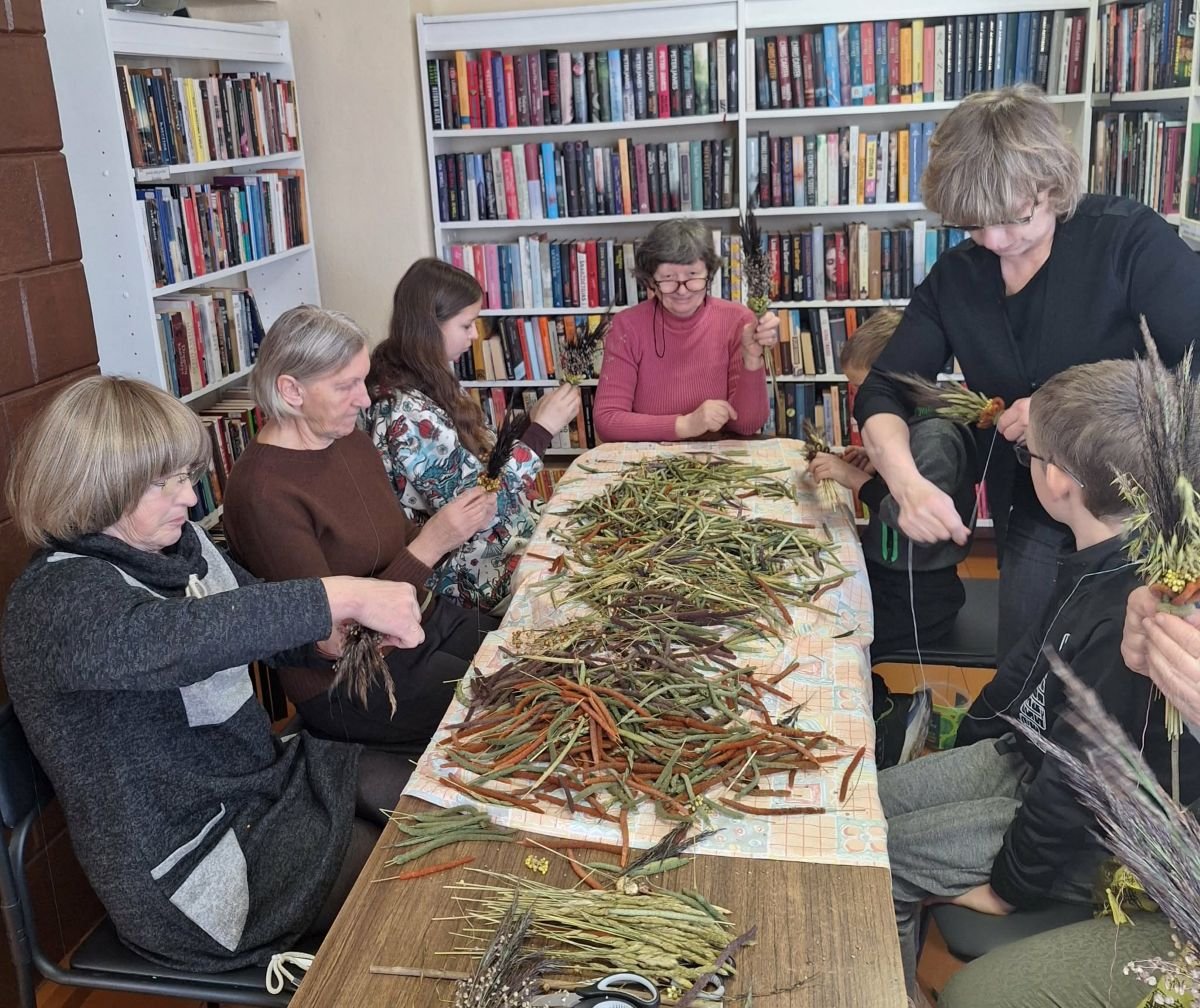 Nors iki Verbų sekmadienio likusi savaitė, mūsų rankose jau puikuojasi spalvingos verbos. Bibliotekoje vykusios edukacijos „Verbų magija“ metu tautodailininkė Elvyra Černiuvienė atskleidė mums Vilniaus krašto verbų rišimo paslaptis. .Ji pabrėžė pasiruošimo svarbą : nepavėluoti prisirinkti žolelių, jas kruopščiai išdžiovinti, o kad augalai netrupėtų, prieš rišant juos būtina mirkyti. Stebint, kaip tautodailininkės rankose gimsta raštai, supranti, kiek kruopštumo reikalauja šis darbas. O mes mokėmės: lankstyti „širdeles“, derinti spalvas ir paslėpti kiekvieną siūlelį. Dalyviai namo išsinešė ne tik savo rankomis sukurtą verbą, bet ir vertingų žinių apie senąjį amatą. Ačiū Elvyrai už kantrybę ir pasidalintą patirtį.