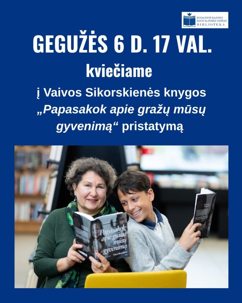 Gegužės 6 dieną 17 00 val. kviečiame į Vaivos Sikorskienės knygos „Papasakok apie gražų mūsų gyvenimą“ pristatymą.