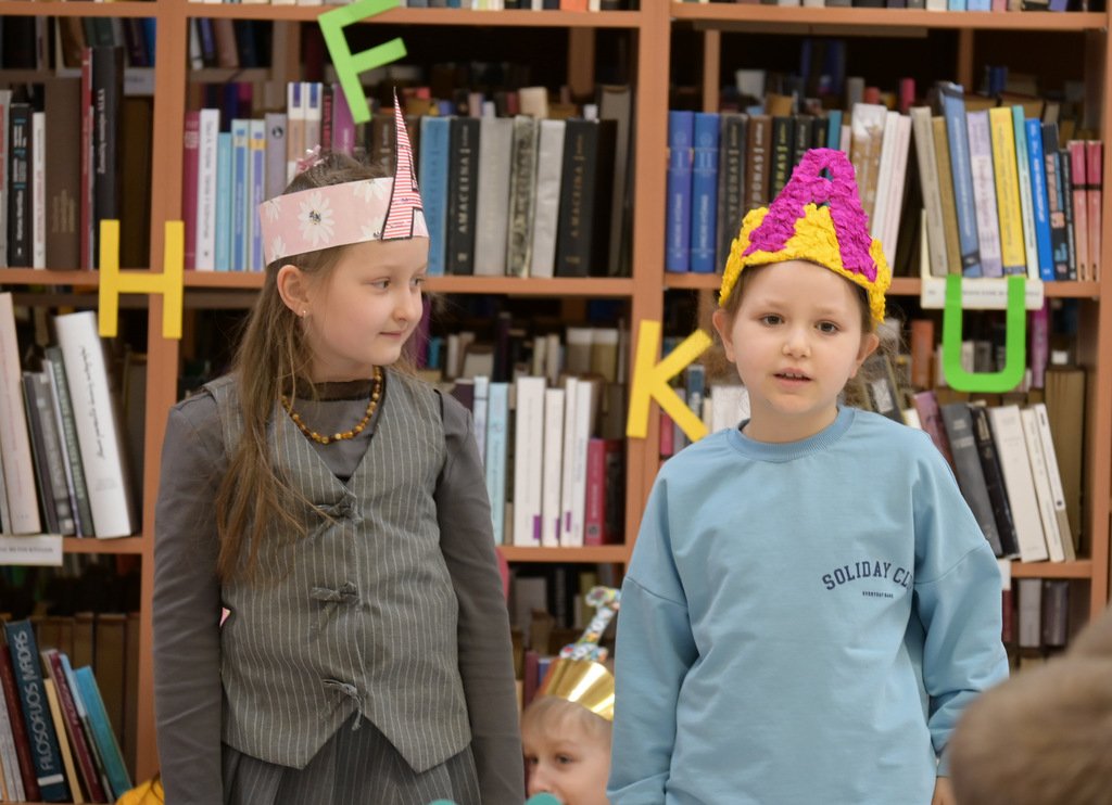 Šventė prasidėjo žaisminga istorija: susirinkusiuosius pasitiko bibliotekos personažas – pelėda Paulė, pametusi visas abėcėlės raides. Į pagalbą jai atskubėjo linksmoji sesė, o kartu su ja – ir mažieji šventės dalyviai. Pirmokai aktyviai įsitraukė į užduotis ir netruko įrodyti, kad raidžių pasaulį jau pažįsta puikiai.