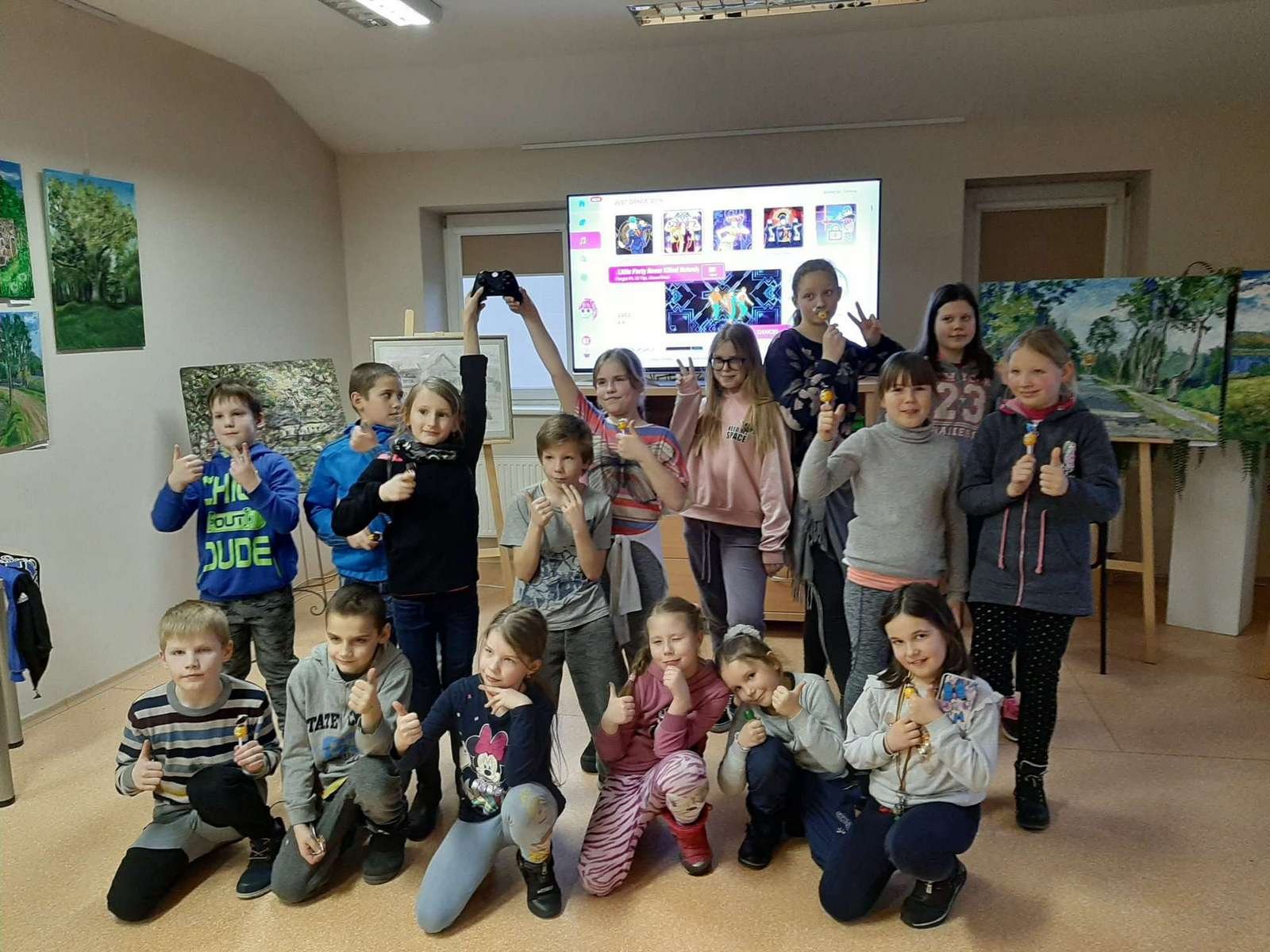 Vasario 11 d. Atradimų erdvėje Carito dienos centro vaikai išbandė savo jėgas Just Dance šokių konkurse. Pasidalinę į 4 komandas ėmėsi šokti. Net ir patys nedrąsiausi judėjo muzikos ritmu ir nekantraudami laukė savo pasirodymo. Susumavus taškus pasirodė, kad laimėjo Sonatos, Simonos ir Lukrecijos komanda (43 003 taškai), bet visi vaikai išėjo laimingi, nes buvo drąsūs, aktyvus ir draugiški.